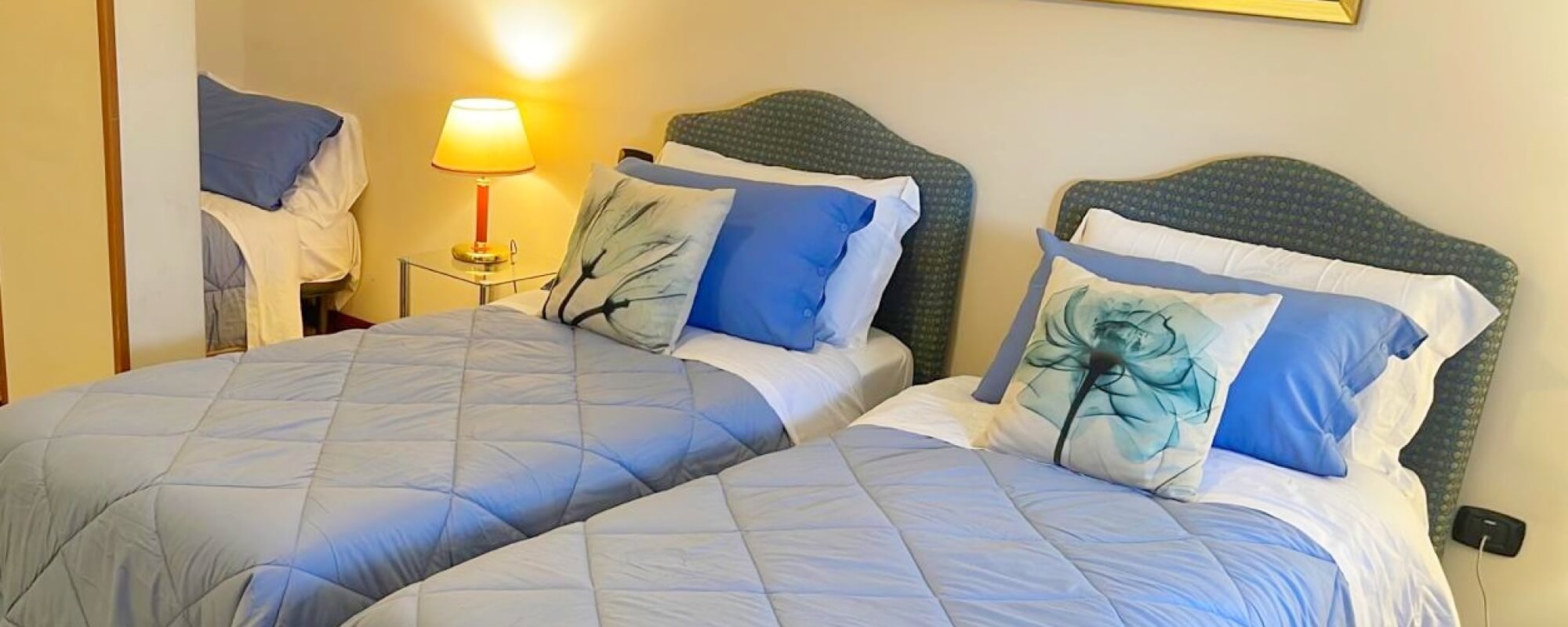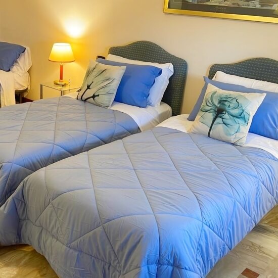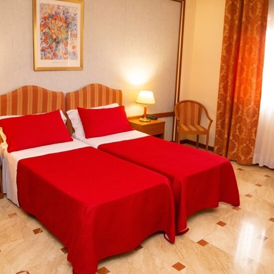 Questa camera di 30 mq circa, è l'ideale per chi desidera un soggiorno in spazi generosi, sia nella zona notte che nella zona bagno. Una sistemazione ottimale dopo una giornata di lavoro oppure trascorsa alla scoperta delle bellezze del territorio, una pausa rigenerante in un ambiente intimo e confortevole. Accogliente e funzionale, ha due letti separati più grandi delle misure standard (mis.100x190).